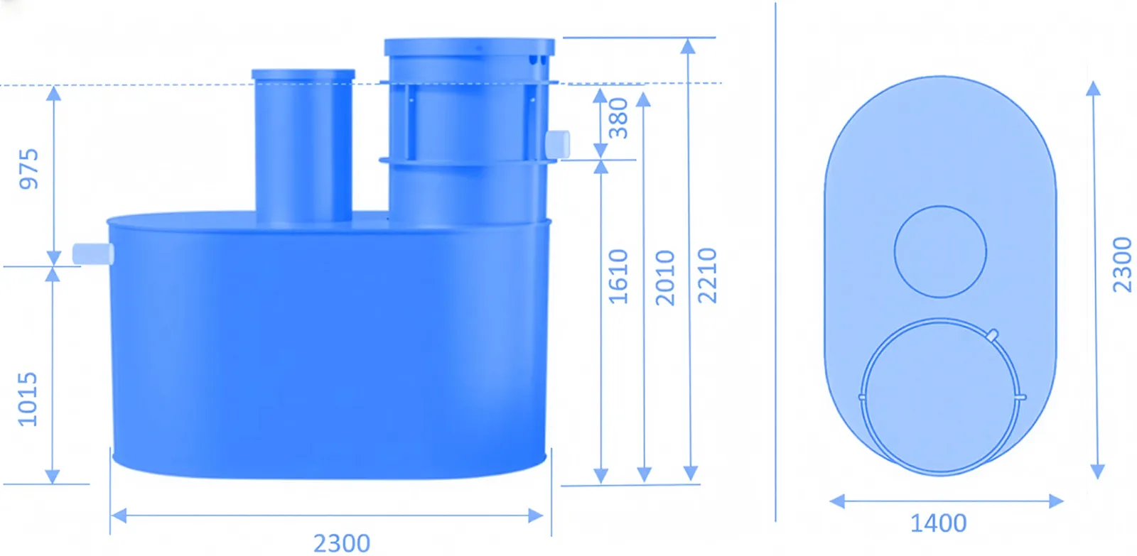 The KaacKai Mini Combi Pod is a compact, self-contained wastewater treatment unit with an integrated conservancy tank designed for single households, small lodges, and campsites.